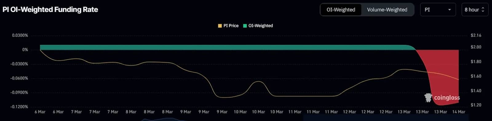 Uno de los indicadores más claros de la dirección del mercado es el financiamiento de los contratos de futuros. Actualmente, los datos muestran que la mayoría de los inversores están apostando a la baja, abriendo contratos cortos en Pi Coin en lugar de largos. Esto refuerza la idea de que el mercado anticipa una mayor caída en el precio.