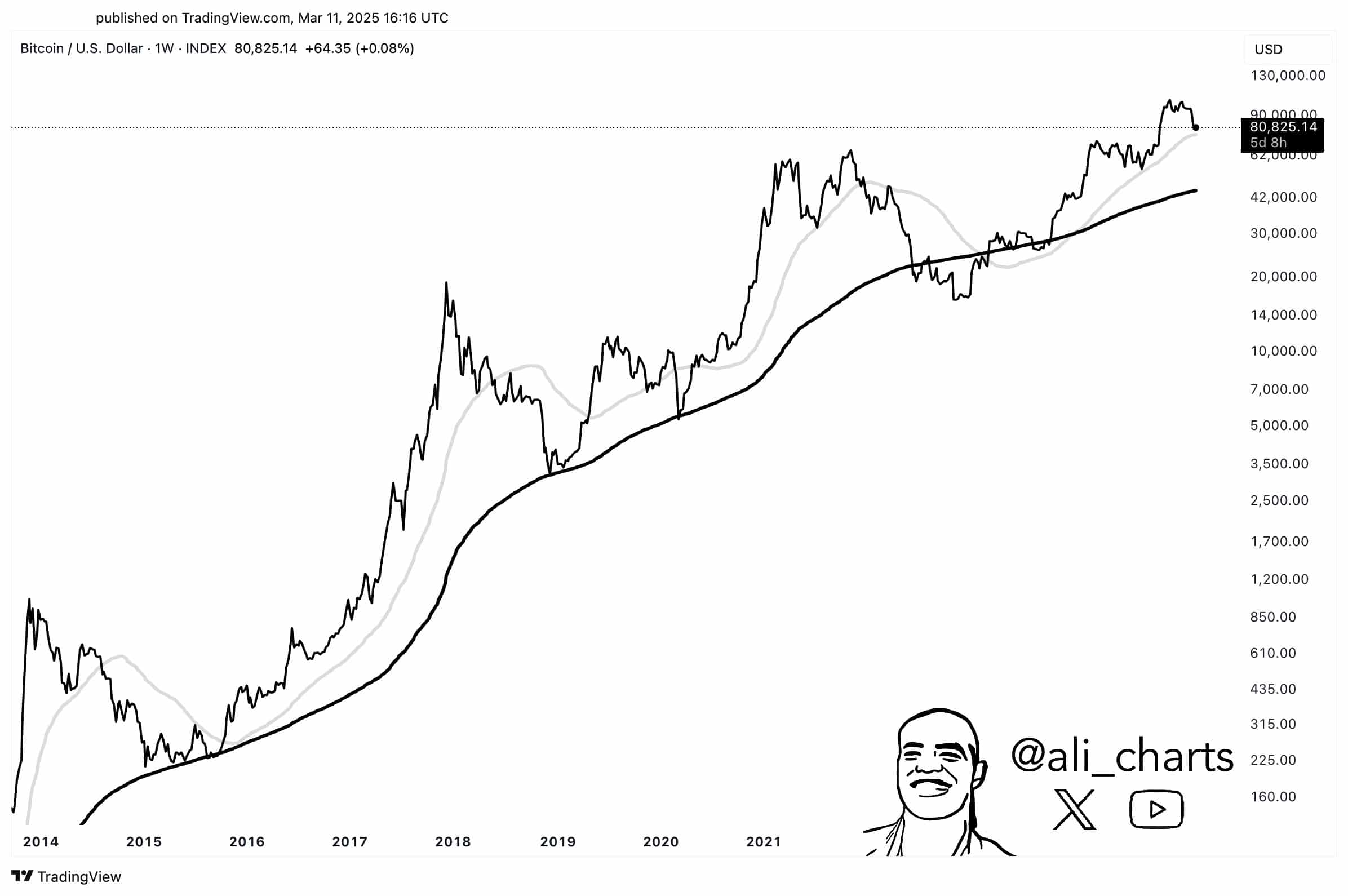 El analista Ali Martinez ha identificado una tendencia histórica en el movimiento de Bitcoin: cuando el precio cae por debajo de la media móvil (MA) de 50 semanas, suele probar la MA de 200 semanas.
