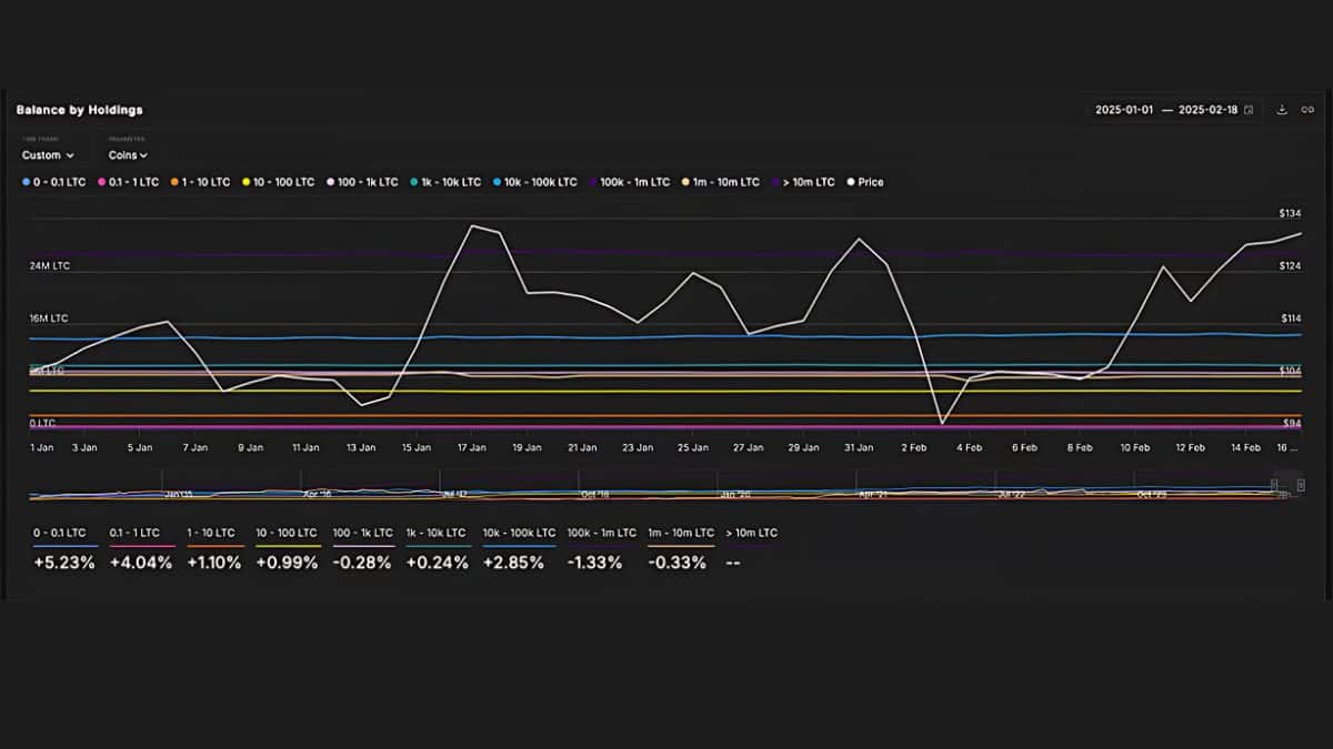 - Acumulación de ballenas: Las tenencias de ballenas en LTC han aumentado en 420 millones de tokens en 2025, lo que refuerza la confianza en una tendencia alcista.