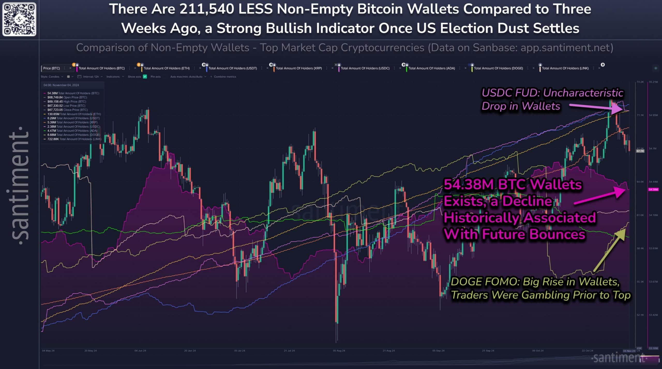 - Ciclo de 2022: Un descenso en direcciones activas durante la incertidumbre macroeconómica precedió el repunte hacia los $30,000.